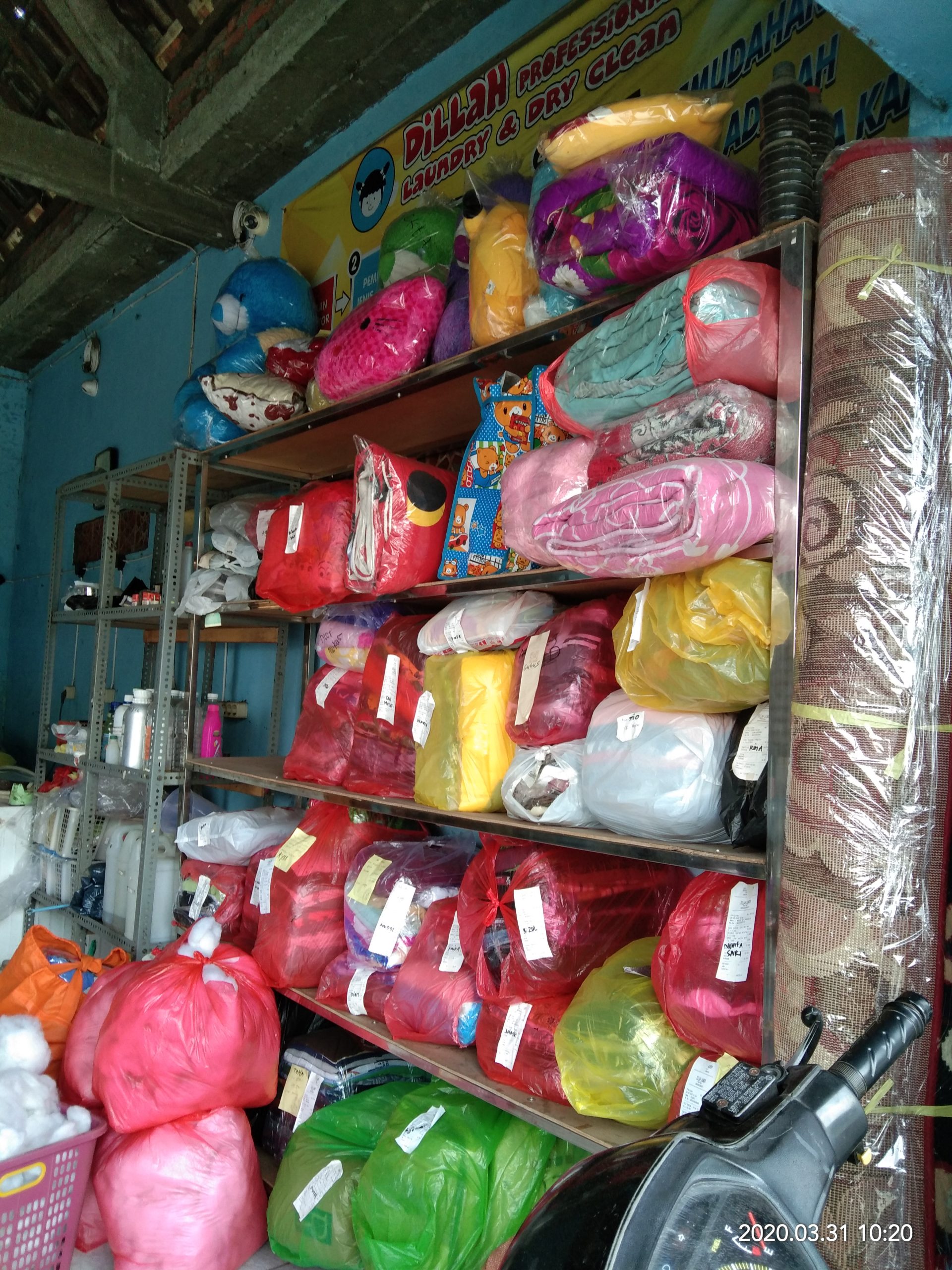 proses pencucian komplit dari dicuci di mesin cuci, dikeringkan, disetrika dan packing rapi.